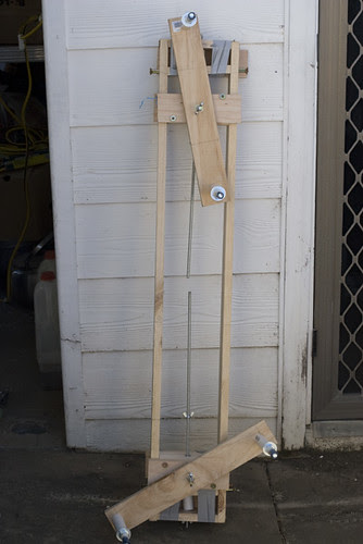 The jig has wing-nuts that limit the movement of the rails along the jig with the two threaded bolts.